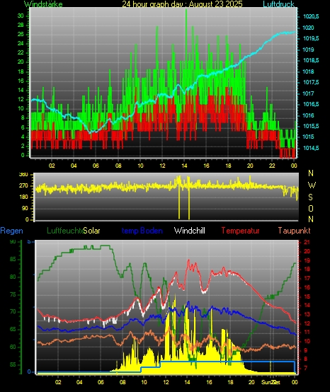 Höchstes Windspitze = 29.6 km/h aus 315°( NW) tag 23 zeit 14:13