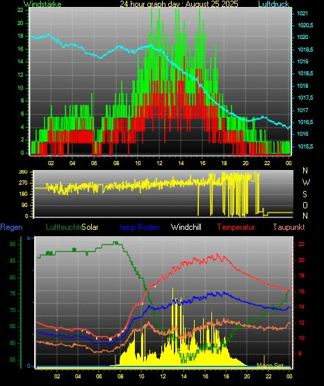 Höchstes Windmittel = 16.7 kmh aus 275°( W ) tag 16 zeit 15:01