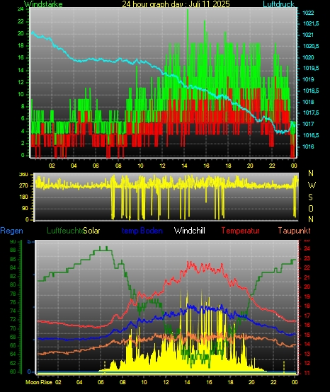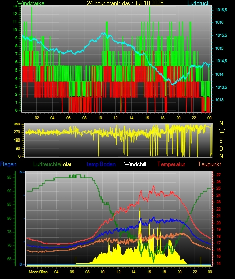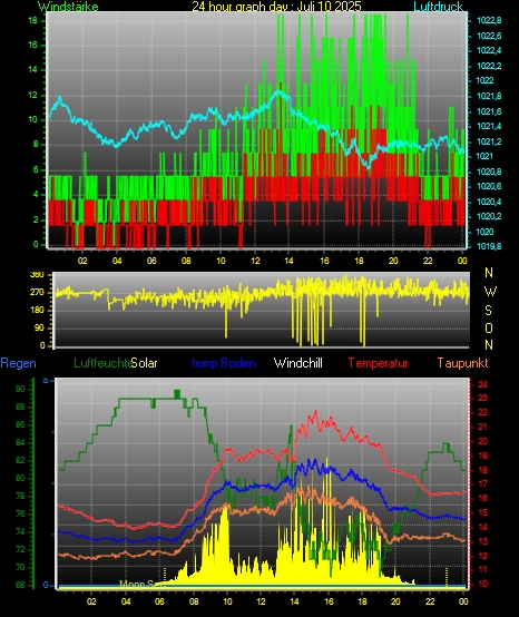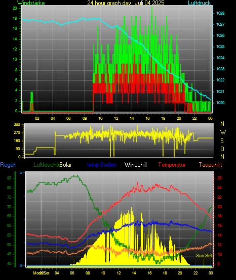 Höchstes Windmittel = 18.5 kmh aus 311°( NW) tag 08 zeit 13:45