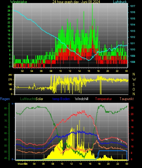 Höchstes Windmittel = 20.4 kmh aus 271°( W ) tag 08 zeit 16:47