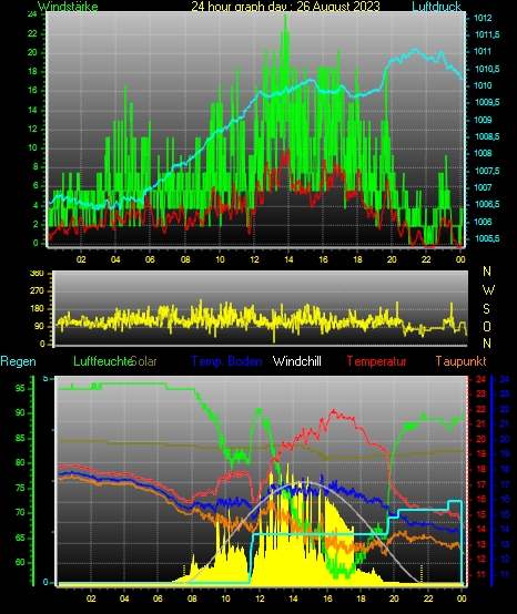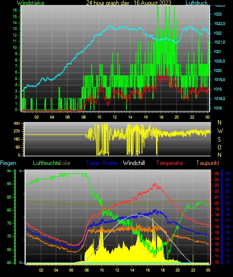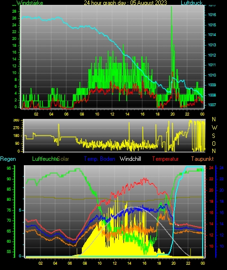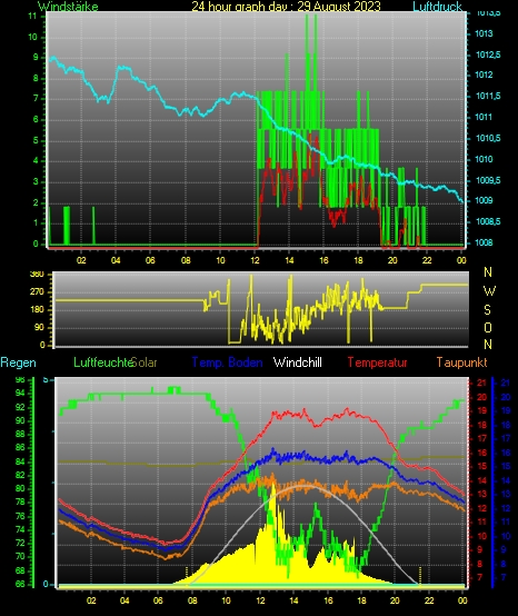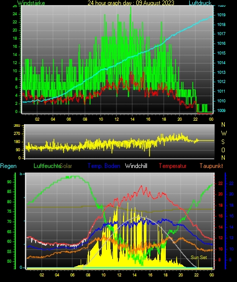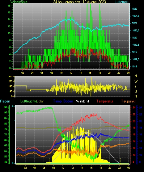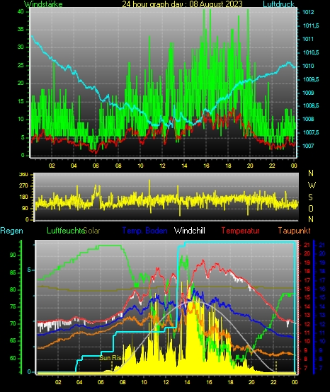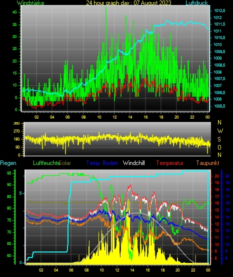 Höchstes Windmittel = 22.2 kmh aus 258°(WSW) tag 07 zeit 10:58