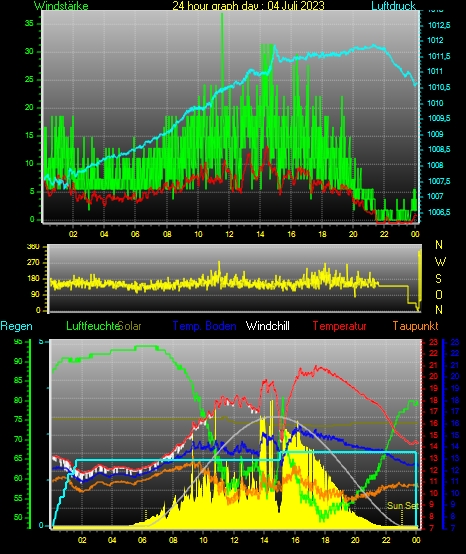 Höchstes Windspitze = 37.0 km/h aus 129°( SE) tag 04 zeit 11:37
