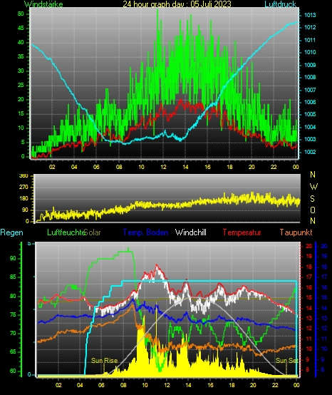 Höchstes Windmittel = 27.8 kmh aus 150°(SSE) tag 05 zeit 14:59