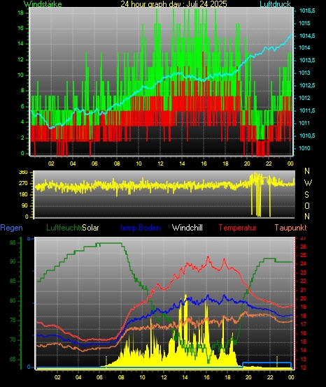 Höchstes Windmittel = 18.5 kmh aus 311°( NW) tag 08 zeit 13:45