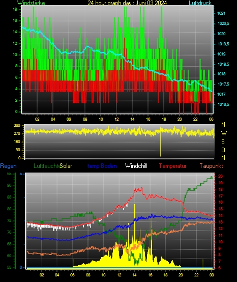 Höchstes Windmittel = 20.4 kmh aus 271°( W ) tag 08 zeit 16:47