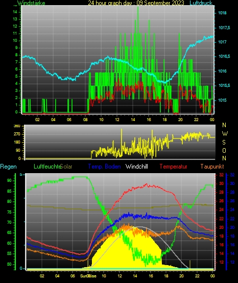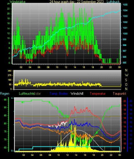 Höchstes Windspitze = 24.1 km/h aus 086°( E ) tag 22 zeit 13:46