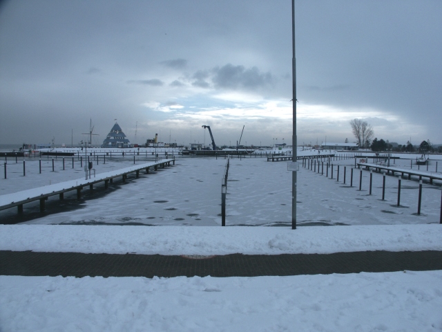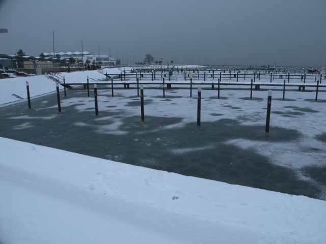Bild 2 und 3 der Damper Yachthafen,komplett mit Eis bedeckt.