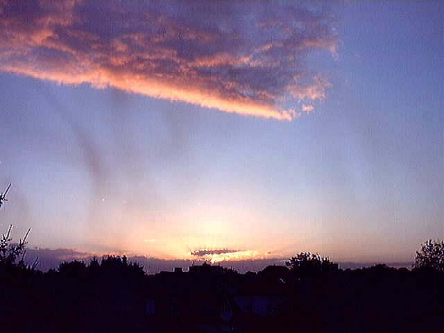 Sonnenaufgang mit Altocumulus-Floccus-Virga am 28.8.2001