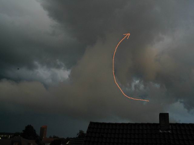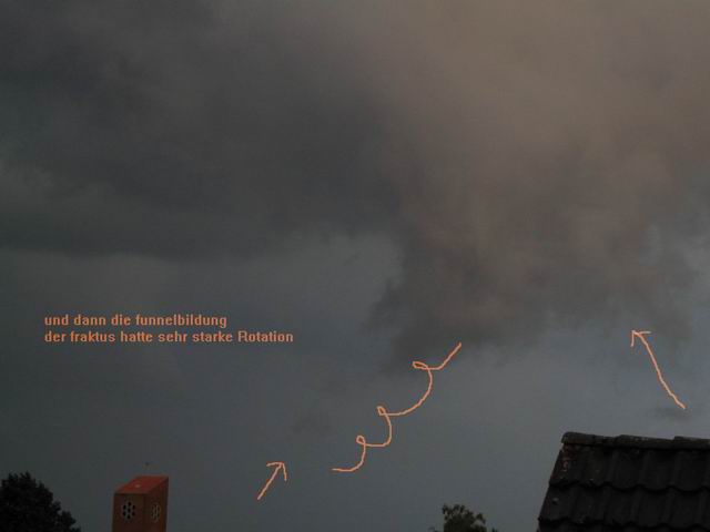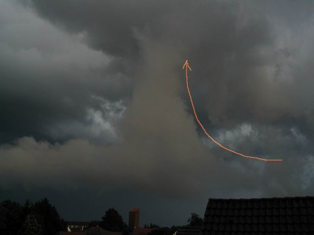 Bild 1 zeigt die entstehung des Schlotes,die Wolke wurde genau in Feilrichtung in das System gesaugt.
