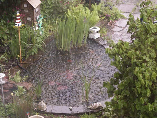 Hier ist zusehen wie der Hagel in mein Teich fällt